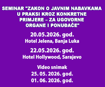 SEMINAR "ZAKON O JAVNIM NABAVKAMA U PRAKSI KROZ KONKRETNE PRIMJERE – ZA UGOVORNE ORGANE I PONUĐAČE"